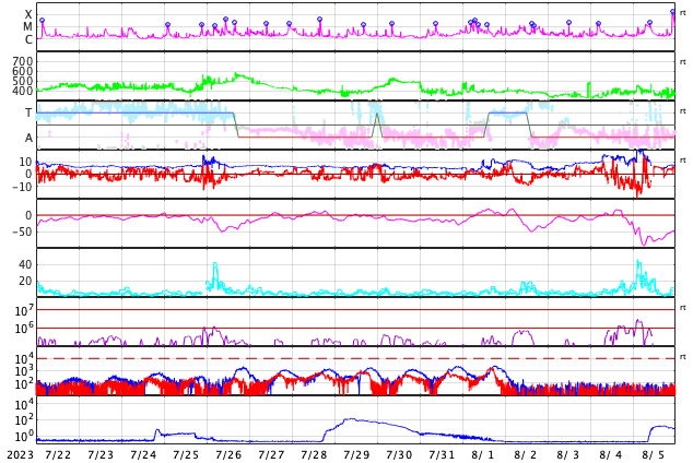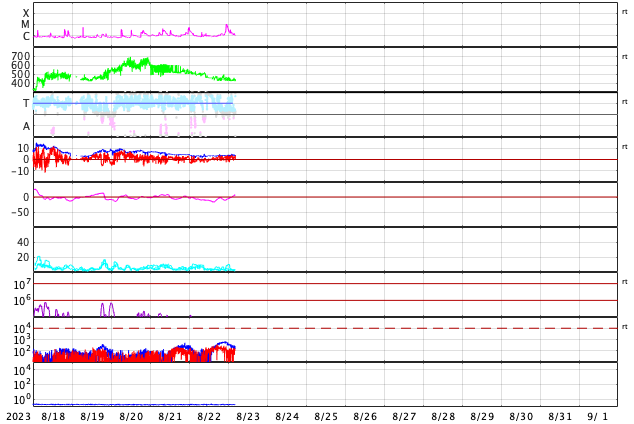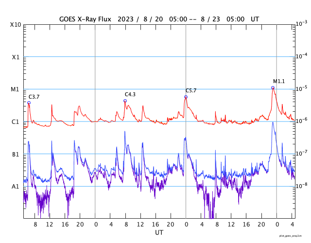 GOES衛星の太陽X線強度。赤・橙 = 0.1〜0.8 nm、青・紫 = 0.05〜0.4 nm (c) データ:NOAA/SWPC、作図:宇宙天気ニュース ![]() | |||||||||||||||||||||||||||||||||||||||||||||||||||||||||||||||||||||||||||||||||||||||||||||||||||||||||||||||||||||||||||||||||||||||||||||||||||||||||||||||||||||||||||||||||||||||||||||||||||||||||||||||||||||||||||||||||||||||||||||||||||||||||