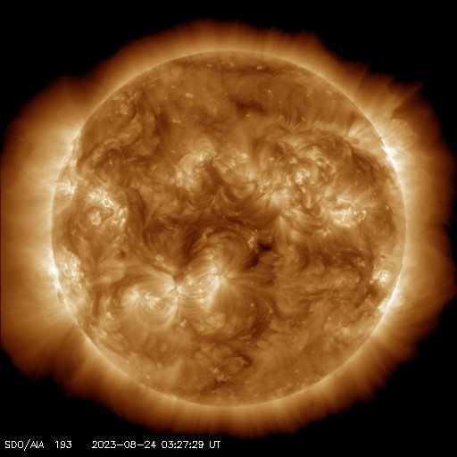 - 2023/ 8/20 11:07 太陽風は高速になっています。太陽は穏やかです。