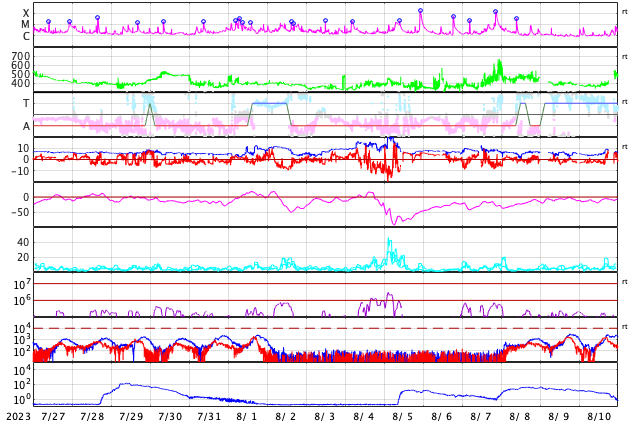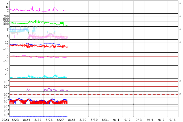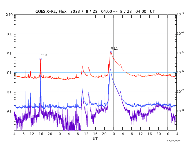 GOES衛星の太陽X線強度。赤・橙 = 0.1〜0.8 nm、青・紫 = 0.05〜0.4 nm (c) データ:NOAA/SWPC、作図:宇宙天気ニュース ![]() | |||||||||||||||||||||||||||||||||||||||||||||||||||||||||||||||||||||||||||||||||||||||||||||||||||||||||||||||||||||||||||||||||||||||||||||||||||||||||||||||||||||||||||||||||||||||||||||||||||||||||||||||||||||||||||||||||||||||