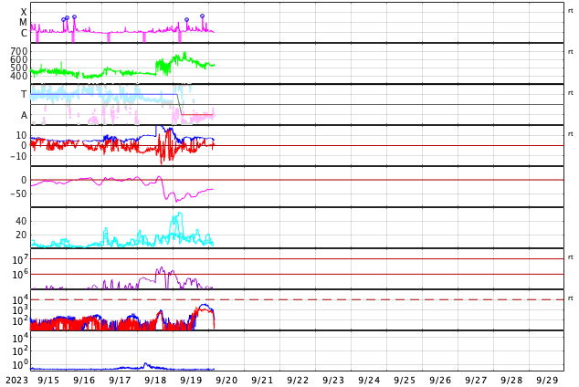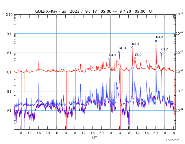 GOES衛星の太陽X線強度。赤・橙 = 0.1〜0.8 nm、青・紫 = 0.05〜0.4 nm (c) データ:NOAA/SWPC、作図:宇宙天気ニュース ![]() | |||||||||||||||||||||||||||||||||||||||||||||||||||||||||||||||||||||||||||||||||||||||||||||||||||||||||||||||||||||||||||||||||||||||||||||||||||||||||||||||||||||||||||||||||||||||||||||||||||||||||||||||||||||||||||||||||||||||||||||||||||||||||||||||||||||||||||||||||||||||||||||||||||||||