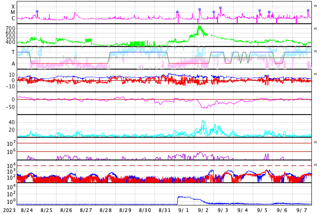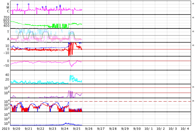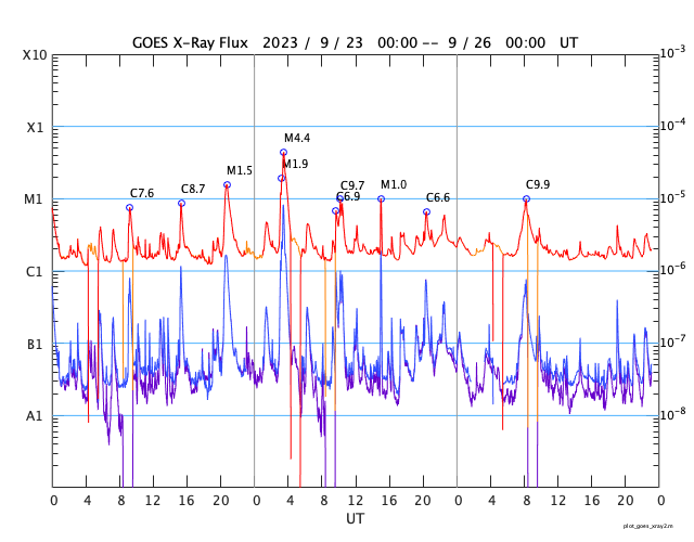 GOES衛星の太陽X線強度。赤・橙 = 0.1〜0.8 nm、青・紫 = 0.05〜0.4 nm (c) データ:NOAA/SWPC、作図:宇宙天気ニュース ![]() | |||||||||||||||||||||||||||||||||||||||||||||||||||||||||||||||||||||||||||||||||||||||||||||||||||||||||||||||||||||||||||||||||||||||||||||||||||||||||||||||||||||||||||||||||||||||||||||||||||||||||||||||||||||||||||||||||||||||||||||||||||||||||||||||||||||||||||||||||||||||||||||||||||||||||||||||||
