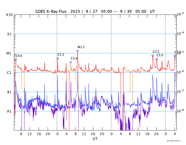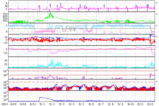 GOES衛星の太陽X線強度。赤・橙 = 0.1〜0.8 nm、青・紫 = 0.05〜0.4 nm (c) データ:NOAA/SWPC、作図:宇宙天気ニュース ![]() | |||||||||||||||||||||||||||||||||||||||||||||||||||||||||||||||||||||||||||||||||||||||||||||||||||||||||||||||||||||||||||||||||||||||||||||||||||||||||||||||||||||||||||||||||||||||||||||||||||||||||||||||||||||||||||||||||||||||||||||||||||||||||||||||||||||||||||||||