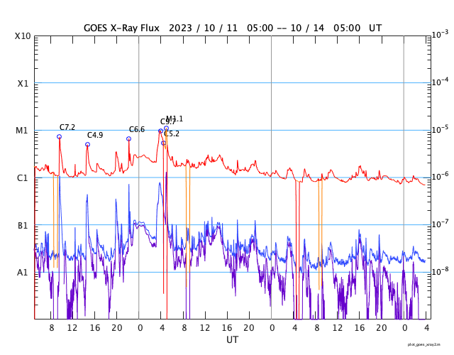 GOES衛星の太陽X線強度。赤・橙 = 0.1〜0.8 nm、青・紫 = 0.05〜0.4 nm (c) データ:NOAA/SWPC、作図:宇宙天気ニュース ![]() | |||||||||||||||||||||||||||||||||||||||||||||||||||||||||||||||||||||||||||||||||||||||||||||||||||||||||||||||||||||||||||||||||||||||||||||||||||||||||||||||||||||||||||||||||||||||||||||||||||||||||||||||||||||||||||||||||||||||||||||||||||