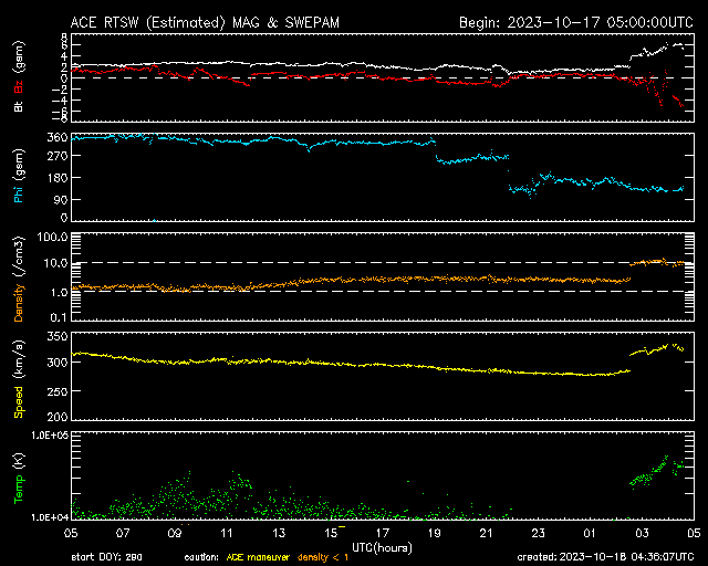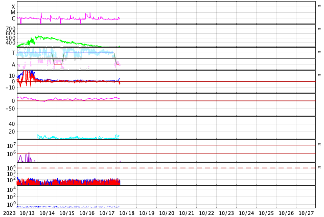 2023/10/17 13:54 太陽風は更に低速になり、磁気圏も穏やかです。