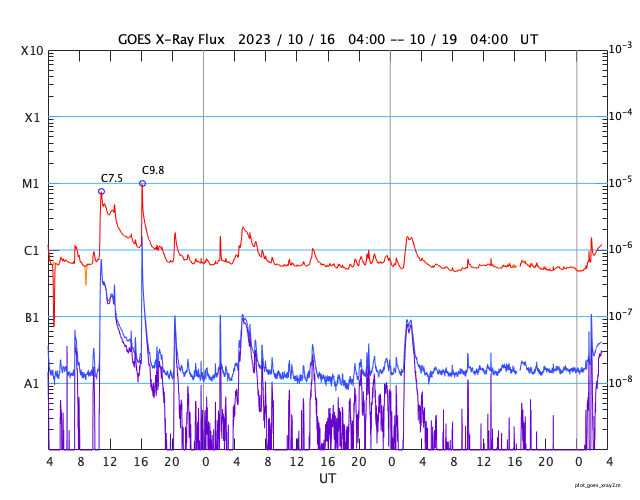 GOES衛星の太陽X線強度。赤・橙 = 0.1〜0.8 nm、青・紫 = 0.05〜0.4 nm (c) データ:NOAA/SWPC、作図:宇宙天気ニュース ![]() | |||||||||||||||||||||||||||||||||||||||||||||||||||||||||||||||||||||||||||||||||||||||||||||||||||||||||||||||||||||||||||||||||||||||||||||||||||||||||||||||||||||||||||||||||||||||||||||||||||||||||||||||||||||||||||