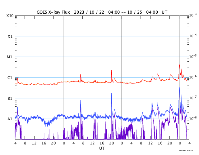 GOES衛星の太陽X線強度。赤・橙 = 0.1〜0.8 nm、青・紫 = 0.05〜0.4 nm (c) データ:NOAA/SWPC、作図:宇宙天気ニュース ![]() | |||||||||||||||||||||||||||||||||||||||||||||||||||||||||||||||||||||||||||||||||||||||||||||||||||||||||||||||||||||||||||||||||||||||||||||||||||||||||||||||||||||||||||||||||||||||||||||||||||||||||||||||||||||||||||