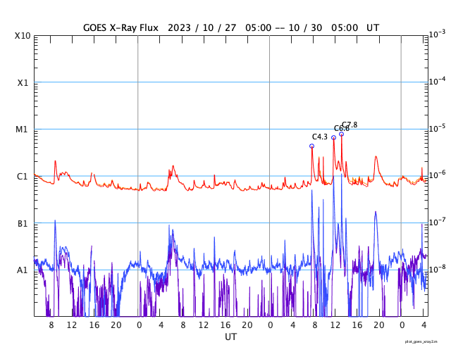 GOES衛星の太陽X線強度。赤・橙 = 0.1〜0.8 nm、青・紫 = 0.05〜0.4 nm (c) データ:NOAA/SWPC、作図:宇宙天気ニュース ![]() | |||||||||||||||||||||||||||||||||||||||||||||||||||||||||||||||||||||||||||||||||||||||||||||||||||||||||||||||||||||||||||||||||||||||||||||||||||||||||||||||||||||||||||||||||||||||||||||||||||||||||||||||||||||||||||||||||||||||||||