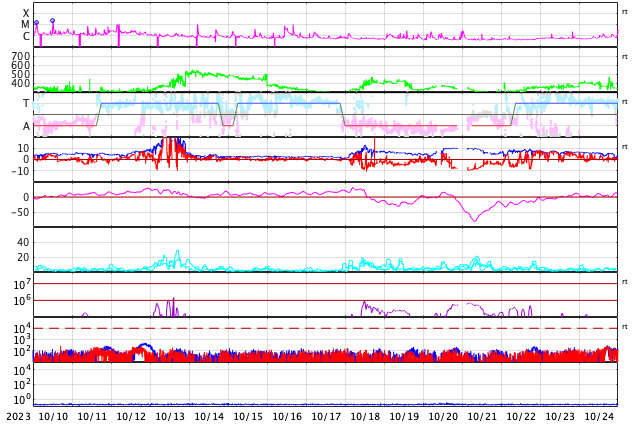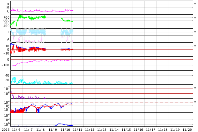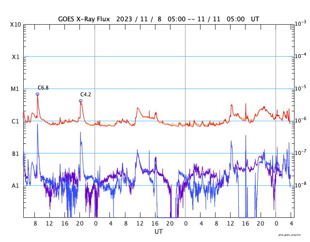 GOES衛星の太陽X線強度。赤・橙 = 0.1〜0.8 nm、青・紫 = 0.05〜0.4 nm (c) データ:NOAA/SWPC、作図:宇宙天気ニュース ![]() | |||||||||||||||||||||||||||||||||||||||||||||||||||||||||||||||||||||||||||||||||||||||||||||||||||||||||||||||||||||||||||||||||||||||||||||||||||||||||||||||||||||||||||||||||||||||||||||||||||||||||||||||||||||||||||||||||||||