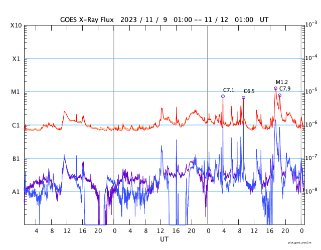 GOES衛星の太陽X線強度。赤・橙 = 0.1〜0.8 nm、青・紫 = 0.05〜0.4 nm (c) データ:NOAA/SWPC、作図:宇宙天気ニュース ![]() | |||||||||||||||||||||||||||||||||||||||||||||||||||||||||||||||||||||||||||||||||||||||||||||||||||||||||||||||||||||||||||||||||||||||||||||||||||||||||||||||||||||||||||||||||||||||||||||||||||||||||||||||||||||||||||||||||||||||||||||||||||||||||||||||||
