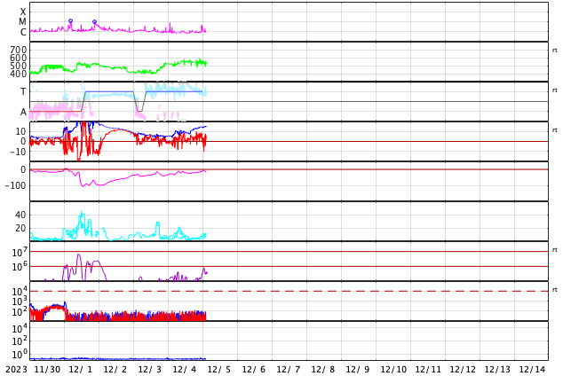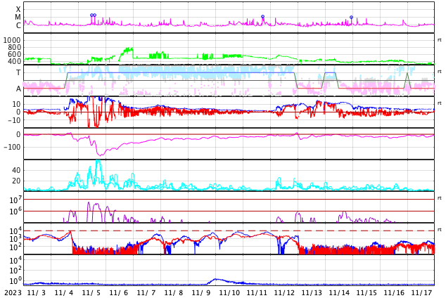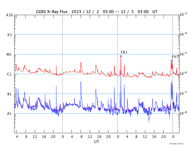 GOES衛星の太陽X線強度。赤・橙 = 0.1〜0.8 nm、青・紫 = 0.05〜0.4 nm (c) データ:NOAA/SWPC、作図:宇宙天気ニュース ![]() | |||||||||||||||||||||||||||||||||||||||||||||||||||||||||||||||||||||||||||||||||||||||||||||||||||||||||||||||||||||||||||||||||||||||||||||||||||||||||||||||||||||||||||||||||||||||||||||||||||||||||||||||||||||||||||||||||||||||||||||||||||||||||||