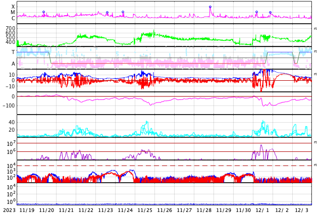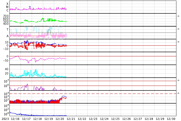 GOES衛星の太陽X線強度。赤・橙 = 0.1〜0.8 nm、青・紫 = 0.05〜0.4 nm (c) データ:NOAA/SWPC、作図:宇宙天気ニュース ![]() | |||||||||||||||||||||||||||||||||||||||||||||||||||||||||||||||||||||||||||||||||||||||||||||||||||||||||||||||||||||||||||||||||||||||||||||||||||||||||||||||||||||||||||||||||||||||||||||||||||||||||||||||||||||||||||||||||||||||||||||||||||||||||||||||||||||||||||||||||||||||||||||