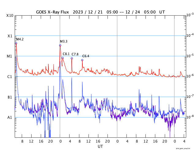 GOES衛星の太陽X線強度。赤・橙 = 0.1〜0.8 nm、青・紫 = 0.05〜0.4 nm (c) データ:NOAA/SWPC、作図:宇宙天気ニュース ![]() | ||||||||||||||||||||||||||||||||||||||||||||||||||||||||||||||||||||||||||||||||||||||||||||||||||||||||||||||||||||||||||||||||||||||||||||||||||||||||||||||||||||||||||||||||||||||||||||||||||||||||||||||||||||||||||||||||||||||||||||||||||||||||||||||||