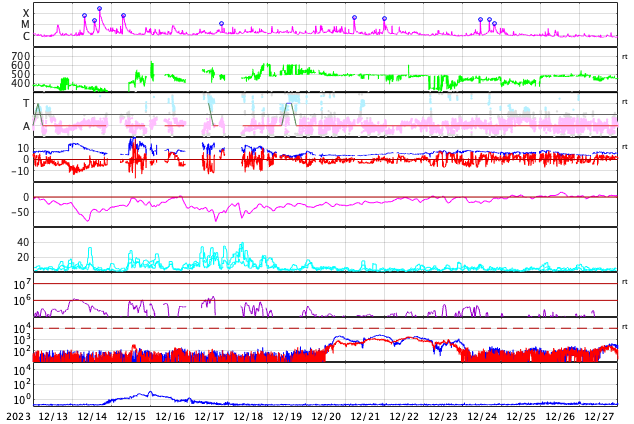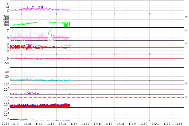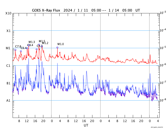GOES衛星の太陽X線強度。赤・橙 = 0.1〜0.8 nm、青・紫 = 0.05〜0.4 nm (c) データ:NOAA/SWPC、作図:宇宙天気ニュース ![]() | |||||||||||||||||||||||||||||||||||||||||||||||||||||||||||||||||||||||||||||||||||||||||||||||||||||||||||||||||||||||||||||||||||||||||||||||||||||||||||||||||||||||||||||||||||||||||||||||||||||||||||||||||||||||||||||||||||||||||||||||||||||||||||||||||||||||||||||||||||||||||||||||||||||||