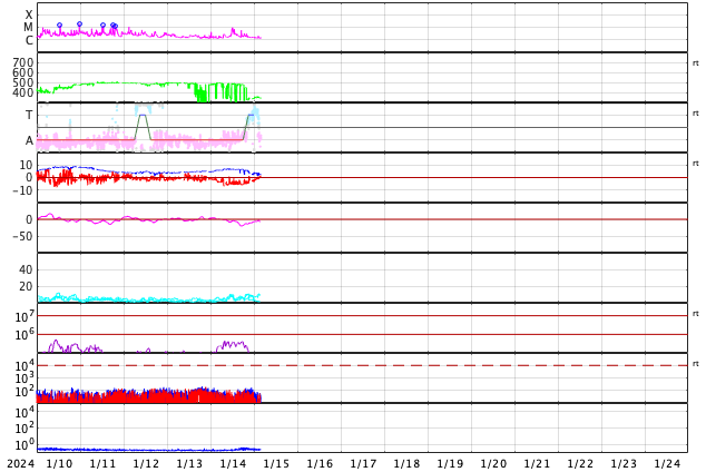GOES衛星の太陽X線強度。赤・橙 = 0.1〜0.8 nm、青・紫 = 0.05〜0.4 nm (c) データ:NOAA/SWPC、作図:宇宙天気ニュース ![]() | |||||||||||||||||||||||||||||||||||||||||||||||||||||||||||||||||||||||||||||||||||||||||||||||||||||||||||||||||||||||||||||||||||||||||||||||||||||||||||||||||||||||||||||||||||||||||||||||||||||||||||||||||||||||||||||||||||||||||||||||||||||||||||||||||||||||||||||||||