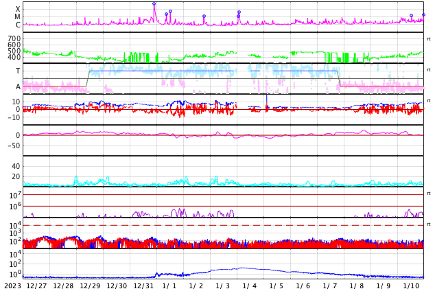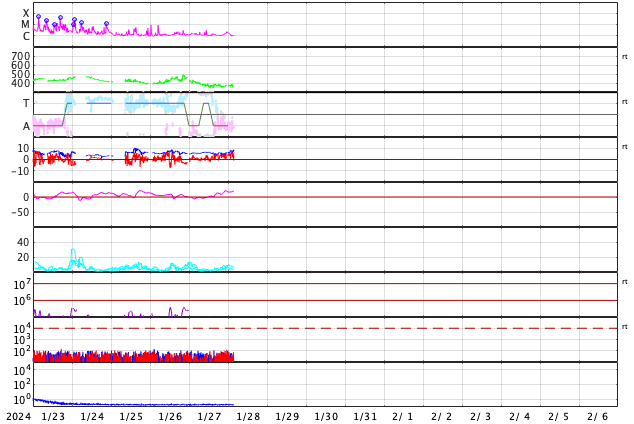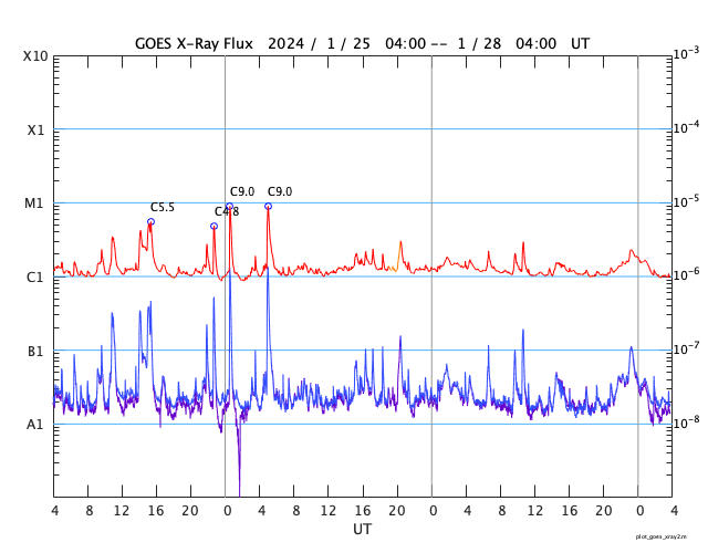 GOES衛星の太陽X線強度。赤・橙 = 0.1〜0.8 nm、青・紫 = 0.05〜0.4 nm (c) データ:NOAA/SWPC、作図:宇宙天気ニュース ![]() | |||||||||||||||||||||||||||||||||||||||||||||||||||||||||||||||||||||||||||||||||||||||||||||||||||||||||||||||||||||||||||||||||||||||||||||||||||||||||||||||||||||||||||||||||||||||||||||||||||||||||||||||||||||||||||||||||||
