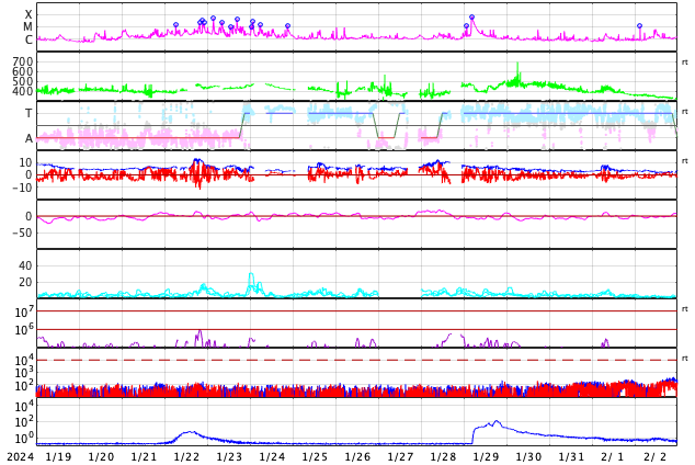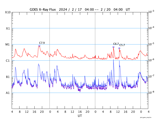 GOES衛星の太陽X線強度。赤・橙 = 0.1〜0.8 nm、青・紫 = 0.05〜0.4 nm (c) データ:NOAA/SWPC、作図:宇宙天気ニュース ![]() | |||||||||||||||||||||||||||||||||||||||||||||||||||||||||||||||||||||||||||||||||||||||||||||||||||||||||||||||||||||||||||||||||||||||||||||||||||||||||||||||||||||||||||||||||||||||||||||||||||||||||||||||||||||||||||||||||||||||||||||||||