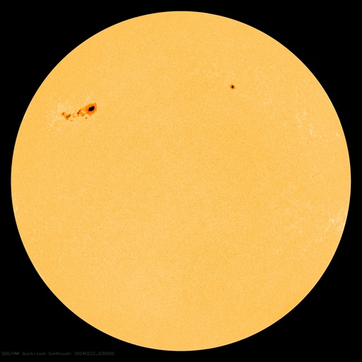 (c) SDO衛星AIA131 (NASA)、(動画加工 : 宇宙天気ニュース) ![]() 3590黒点群の拡大写真。 (c) SDO衛星HMII (NASA)、作図 : 宇宙天気ニュース ![]() 太陽の西側で発生したフィラメント噴出。 (c) GOES衛星SUVI 304 (NOAA)、(動画加工 : 宇宙天気ニュース) ![]() 太陽の右側へ広がるCME。 (c) SOHO衛星LASCO C2、C3 (ESA & NASA)、(動画加工 : 宇宙天気ニュース) ![]() SDO衛星のAIA193カメラによる太陽コロナの様子 (c) SDO (NASA) ![]() SDO衛星による太陽の可視光写真。マウスの矢印を写真に重ねると、黒点番号付きの写真に切り替わります。 (c) SDO (NASA) ![]() GOES衛星の太陽X線強度。赤・橙 = 0.1〜0.8 nm、青・紫 = 0.05〜0.4 nm (c) データ:NOAA/SWPC、作図:宇宙天気ニュース ![]() ACEが観測した太陽風の磁場(1番上の枠、白線は全体の強度、赤線は南北成分) および、太陽風の密度(3番目の橙線)、速度(4番目の黄線) (c) NOAA/SWPC ![]() AE指数(速報値) 下段のAEグラフの値が高くなると、オーロラ活動が活発化しています。 (c) 京都大学WDC ![]() ![]() 27日の太陽周期に合わせた図 太陽が同じ面を地球に向けていた27日前の変化から、今後を予想することができます。 (c) 作図:宇宙天気ニュース