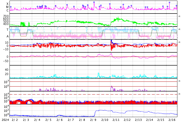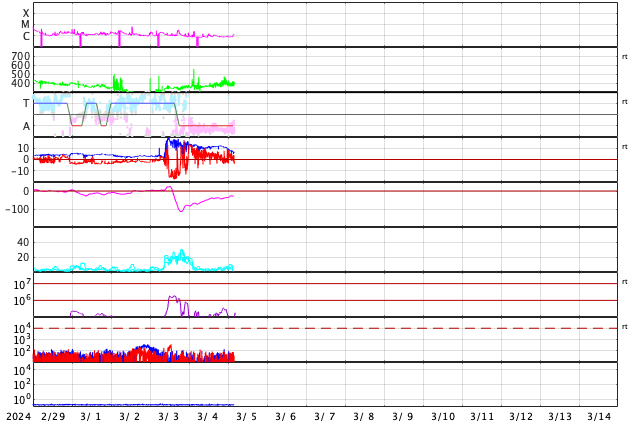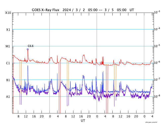 GOES衛星の太陽X線強度。赤・橙 = 0.1〜0.8 nm、青・紫 = 0.05〜0.4 nm (c) データ:NOAA/SWPC、作図:宇宙天気ニュース ![]() | |||||||||||||||||||||||||||||||||||||||||||||||||||||||||||||||||||||||||||||||||||||||||||||||||||||||||||||||||||||||||||||||||||||||||||||||||||||||||||||||||||||||||||||||||||||||||||||||||||||||||||||||||||||||||||||||||||||||||||||||||||||||||