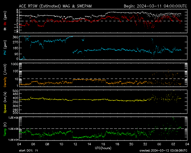 - 2024/ 3/ 9 13:10 太陽風の速度が一時的に高まりました。