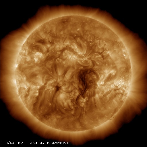 SDO衛星AIA193では、目立つほどのコロナホールはなく、