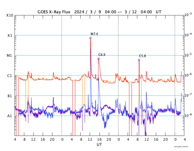 - 2024/ 3/11 09:40 M7.4の中規模フレアが発生しました。太陽風は平均的な状態です。