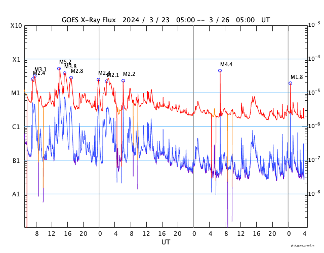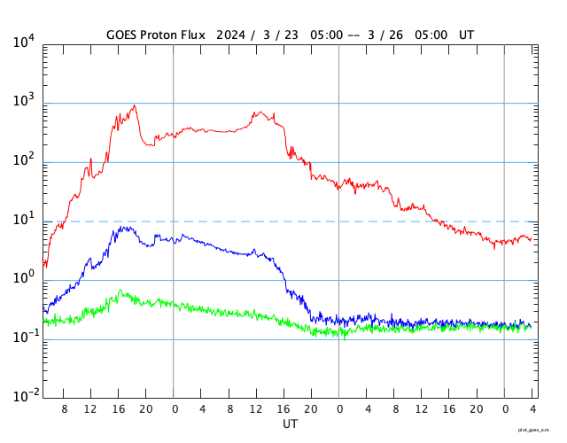 GOES衛星の太陽X線強度。赤・橙 = 0.1〜0.8 nm、青・紫 = 0.05〜0.4 nm (c) データ:NOAA/SWPC、作図:宇宙天気ニュース ![]() GOES衛星による、静止衛星軌道における高エネルギー陽子の変化 (c) データ:NOAA/SWPC、作図:宇宙天気ニュース ![]() | ||||||||||||||||||||||||||||||||||||||||||||||||||||||||||||||||||||||||||||||||||||||||||||||||||||||||||||||||||||||||||||||||||||||||||||||||||||||||||||||||||||||||||||||||||||||||||||||||||||||||||||||||||||||||||||||||||||||||||||||||||||||||||||||||||||||||||||||||||||||||||||||||||||||||||||||||||||||||||||||||||||||||||||||||||||||||||||||||||||||||||||||||||