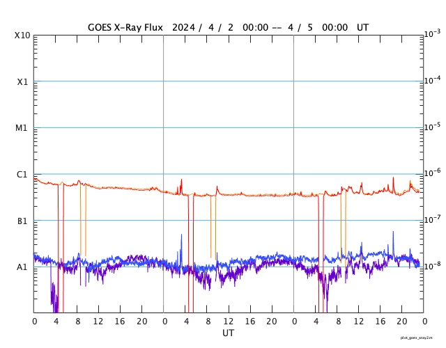 GOES衛星の太陽X線強度。赤・橙 = 0.1〜0.8 nm、青・紫 = 0.05〜0.4 nm (c) データ:NOAA/SWPC、作図:宇宙天気ニュース ![]() | |||||||||||||||||||||||||||||||||||||||||||||||||||||||||||||||||||||||||||||||||||||||||||||||||||||||||||||||||||||||||||||||||||||||||||||||||||||||||||||||||||||||||||||||||||||||||||||||||||||||||||||||||||||||||||