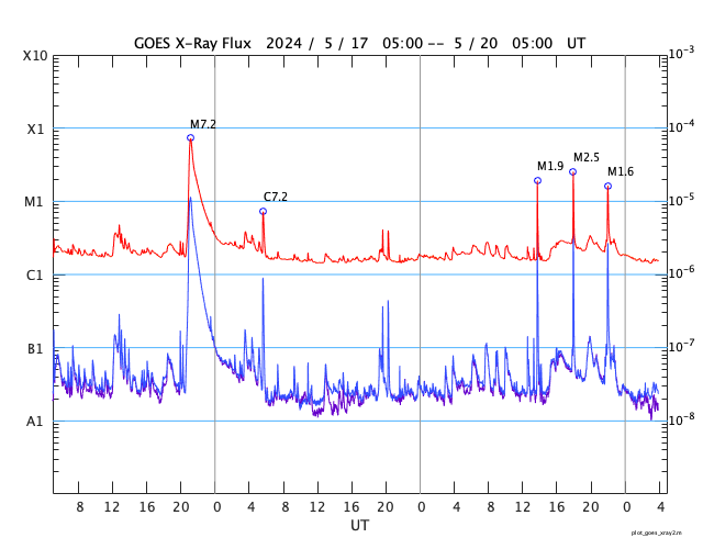 GOES衛星の太陽X線強度。赤・橙 = 0.1〜0.8 nm、青・紫 = 0.05〜0.4 nm (c) データ:NOAA/SWPC、作図:宇宙天気ニュース ![]() | |||||||||||||||||||||||||||||||||||||||||||||||||||||||||||||||||||||||||||||||||||||||||||||||||||||||||||||||||||||||||||||||||||||||||||||||||||||||||||||||||||||||||||||||||||||||||||||||||||||||||||||||||||||||||||||||||||||||||||||||||||||||||||||||||
