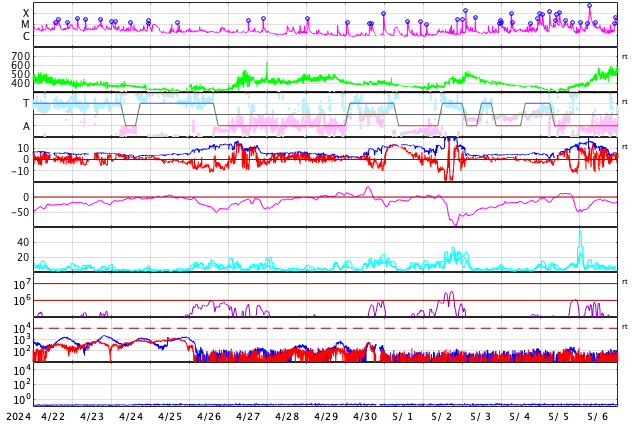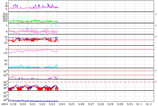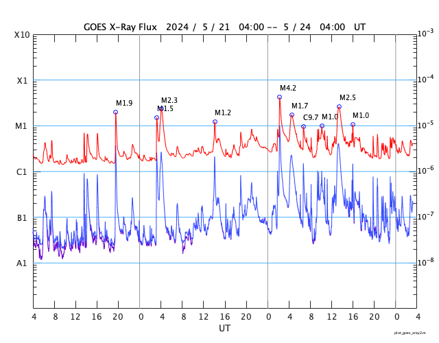 GOES衛星の太陽X線強度。赤・橙 = 0.1〜0.8 nm、青・紫 = 0.05〜0.4 nm (c) データ:NOAA/SWPC、作図:宇宙天気ニュース ![]() | |||||||||||||||||||||||||||||||||||||||||||||||||||||||||||||||||||||||||||||||||||||||||||||||||||||||||||||||||||||||||||||||||||||||||||||||||||||||||||||||||||||||||||||||||||||||||||||||||||||||||||||||||||||||||||||||||||||||||||||||||||||||||||||||||||||||||||||||||||||||||||||||||||||||||||||||||||||||||||||||||||||