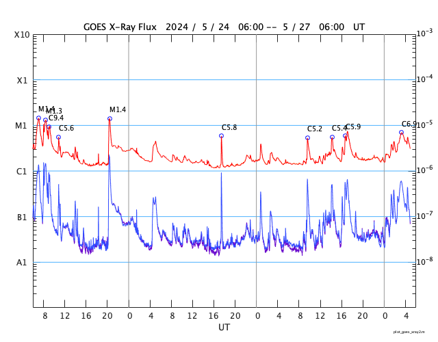GOES衛星の太陽X線強度。赤・橙 = 0.1〜0.8 nm、青・紫 = 0.05〜0.4 nm (c) データ:NOAA/SWPC、作図:宇宙天気ニュース ![]() | |||||||||||||||||||||||||||||||||||||||||||||||||||||||||||||||||||||||||||||||||||||||||||||||||||||||||||||||||||||||||||||||||||||||||||||||||||||||||||||||||||||||||||||||||||||||||||||||||||||||||||||||||||||||||||||||||||||||||||||||||||||||||||||||||||||||||||||||||