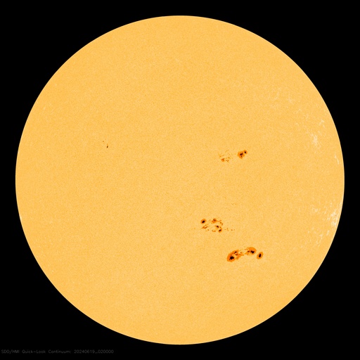 (c) GOES衛星SUVI 304 (NOAA)、(動画加工 : 宇宙天気ニュース) ![]() CMEが太陽の右上に広がっています。 (c) SOHO衛星LASCO C2、C3 (ESA & NASA)、(動画加工 : 宇宙天気ニュース) ![]() SDO衛星のAIA193カメラによる太陽コロナの様子 (c) SDO (NASA) ![]() SDO衛星による太陽の可視光写真。マウスの矢印を写真に重ねると、黒点番号付きの写真に切り替わります。 (c) SDO (NASA) ![]() ACEが観測した太陽風の磁場(1番上の枠、白線は全体の強度、赤線は南北成分) および、太陽風の密度(3番目の橙線)、速度(4番目の黄線) (c) NOAA/SWPC ![]() AE指数(速報値) 下段のAEグラフの値が高くなると、オーロラ活動が活発化しています。 (c) 京都大学WDC ![]() ![]() 27日の太陽周期に合わせた図 太陽が同じ面を地球に向けていた27日前の変化から、今後を予想することができます。 (c) 作図:宇宙天気ニュース