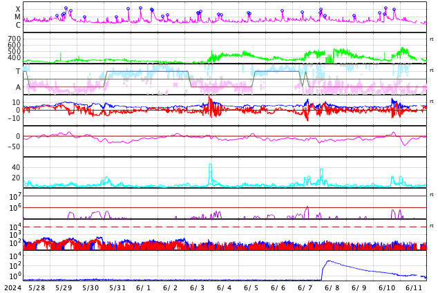 GOES衛星の太陽X線強度。赤・橙 = 0.1〜0.8 nm、青・紫 = 0.05〜0.4 nm (c) データ:NOAA/SWPC、作図:宇宙天気ニュース ![]() | |||||||||||||||||||||||||||||||||||||||||||||||||||||||||||||||||||||||||||||||||||||||||||||||||||||||||||||||||||||||||||||||||||||||||||||||||||||||||||||||||||||||||||||||||||||||||||||||||||||||||||||||||||||||||||||||||||||||||||||||||||||||||||||||||||||||||||||||||||