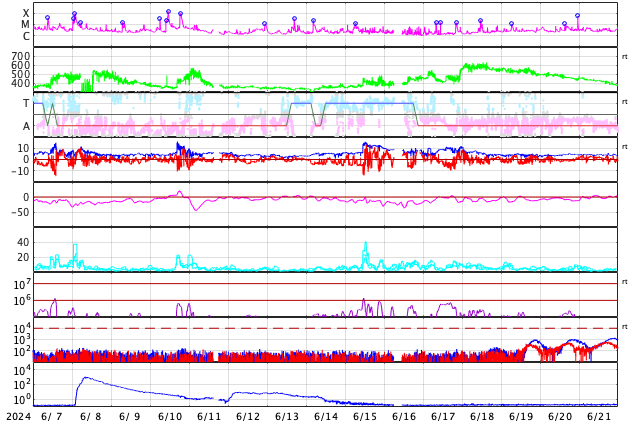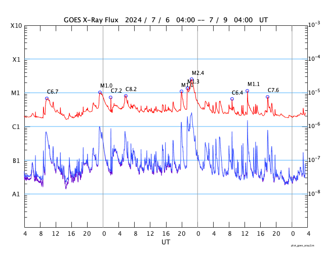 GOES衛星の太陽X線強度。赤・橙 = 0.1〜0.8 nm、青・紫 = 0.05〜0.4 nm (c) データ:NOAA/SWPC、作図:宇宙天気ニュース ![]() | ||||||||||||||||||||||||||||||||||||||||||||||||||||||||||||||||||||||||||||||||||||||||||||||||||||||||||||||||||||||||||||||||||||||||||||||||||||||||||||||||||||||||||||||||||||||||||||||||||||||||||||||||||||||||||||||||||||||||||||||||||||||||||||||||||||||||||||||||||||||||||||||||||||||||||||||||||||