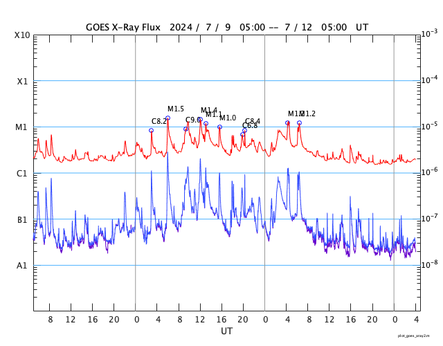 GOES衛星の太陽X線強度。赤・橙 = 0.1〜0.8 nm、青・紫 = 0.05〜0.4 nm (c) データ:NOAA/SWPC、作図:宇宙天気ニュース ![]() | |||||||||||||||||||||||||||||||||||||||||||||||||||||||||||||||||||||||||||||||||||||||||||||||||||||||||||||||||||||||||||||||||||||||||||||||||||||||||||||||||||||||||||||||||||||||||||||||||||||||||||||||||||||||||||||||||||||||||||||||||||||||||||||||||||||||||||||||||||||||||||||||||