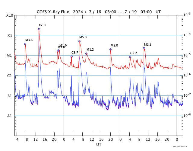 GOES衛星の太陽X線強度。赤・橙 = 0.1〜0.8 nm、青・紫 = 0.05〜0.4 nm (c) データ:NOAA/SWPC、作図:宇宙天気ニュース ![]() | ||||||||||||||||||||||||||||||||||||||||||||||||||||||||||||||||||||||||||||||||||||||||||||||||||||||||||||||||||||||||||||||||||||||||||||||||||||||||||||||||||||||||||||||||||||||||||||||||||||||||||||||||||||||||||||||||||||||||||||||||||||||||||||||||||||||||||||||||||||||||||||||||||||||||||||||||||||||||||||||||||||