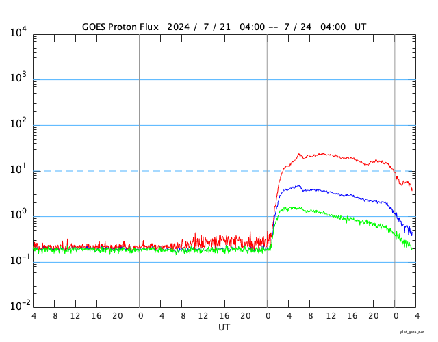 GOES衛星の太陽X線強度。赤・橙 = 0.1〜0.8 nm、青・紫 = 0.05〜0.4 nm (c) データ:NOAA/SWPC、作図:宇宙天気ニュース ![]() GOES衛星による、静止衛星軌道における高エネルギー陽子の変化 (c) データ:NOAA/SWPC、作図:宇宙天気ニュース ![]() | |||||||||||||||||||||||||||||||||||||||||||||||||||||||||||||||||||||||||||||||||||||||||||||||||||||||||||||||||||||||||||||||||||||||||||||||||||||||||||||||||||||||||||||||||||||||||||||||||||||||||||||||||||||||||||||||||||||||||||||||||||||||||||||||||||||||||||||||||||||||||||||||||||||||||||||||||||||||||||||||