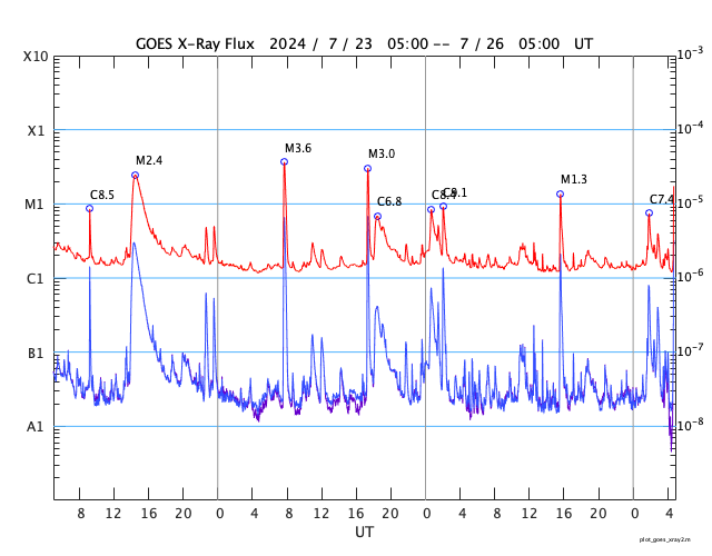 GOES衛星の太陽X線強度。赤・橙 = 0.1〜0.8 nm、青・紫 = 0.05〜0.4 nm (c) データ:NOAA/SWPC、作図:宇宙天気ニュース ![]() | ||||||||||||||||||||||||||||||||||||||||||||||||||||||||||||||||||||||||||||||||||||||||||||||||||||||||||||||||||||||||||||||||||||||||||||||||||||||||||||||||||||||||||||||||||||||||||||||||||||||||||||||||||||||||||||||||||||||||||||||||||||||||||||||||||||||||||||||||||||||||||||||||||