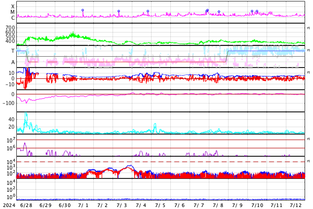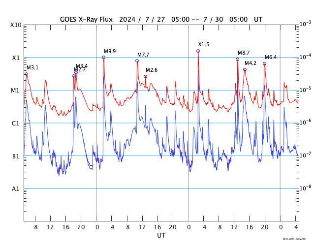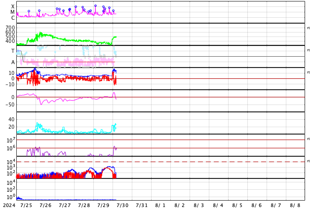 GOES衛星の太陽X線強度。赤・橙 = 0.1〜0.8 nm、青・紫 = 0.05〜0.4 nm (c) データ:NOAA/SWPC、作図:宇宙天気ニュース ![]() | ||||||||||||||||||||||||||||||||||||||||||||||||||||||||||||||||||||||||||||||||||||||||||||||||||||||||||||||||||||||||||||||||||||||||||||||||||||||||||||||||||||||||||||||||||||||||||||||||||||||||||||||||||||||||||||||||||||||||||||||||||||||||||||||||||||||||||||||||||||||||||||||||||||||||||||||||||||||||||||||||||||||||