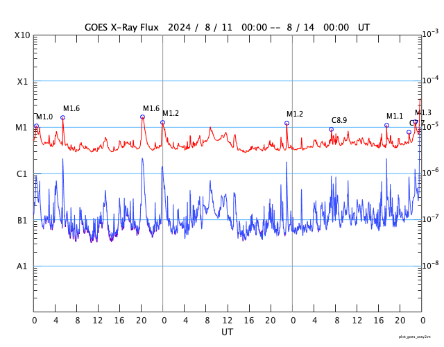 GOES衛星の太陽X線強度。赤・橙 = 0.1〜0.8 nm、青・紫 = 0.05〜0.4 nm (c) データ:NOAA/SWPC、作図:宇宙天気ニュース ![]() | ||||||||||||||||||||||||||||||||||||||||||||||||||||||||||||||||||||||||||||||||||||||||||||||||||||||||||||||||||||||||||||||||||||||||||||||||||||||||||||||||||||||||||||||||||||||||||||||||||||||||||||||||||||||||||||||||||||||||||||||||||||||||||||||||||||||||||||||||||||||||||||||||||||||||||||||||||||||||||||||||||||||||||||||||||