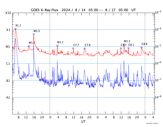 GOES衛星の太陽X線強度。赤・橙 = 0.1〜0.8 nm、青・紫 = 0.05〜0.4 nm (c) データ:NOAA/SWPC、作図:宇宙天気ニュース ![]() | |||||||||||||||||||||||||||||||||||||||||||||||||||||||||||||||||||||||||||||||||||||||||||||||||||||||||||||||||||||||||||||||||||||||||||||||||||||||||||||||||||||||||||||||||||||||||||||||||||||||||||||||||||||||||||||||||||||||||||||||||||||||||||||||||||||||||||||||||||||||||||||||||||||||||||||||||||||||||||