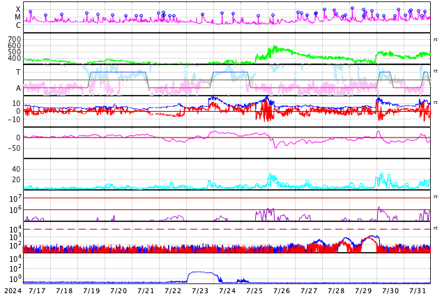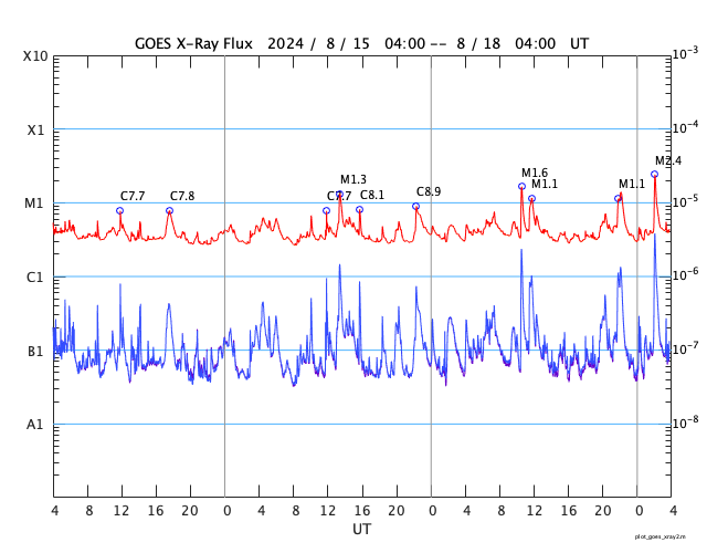 GOES衛星の太陽X線強度。赤・橙 = 0.1〜0.8 nm、青・紫 = 0.05〜0.4 nm (c) データ:NOAA/SWPC、作図:宇宙天気ニュース ![]() | |||||||||||||||||||||||||||||||||||||||||||||||||||||||||||||||||||||||||||||||||||||||||||||||||||||||||||||||||||||||||||||||||||||||||||||||||||||||||||||||||||||||||||||||||||||||||||||||||||||||||||||||||||||||||||||||||||||||||||||||||||||||||||||||||||||||||||||||||||||||||||||||||||||||||||||