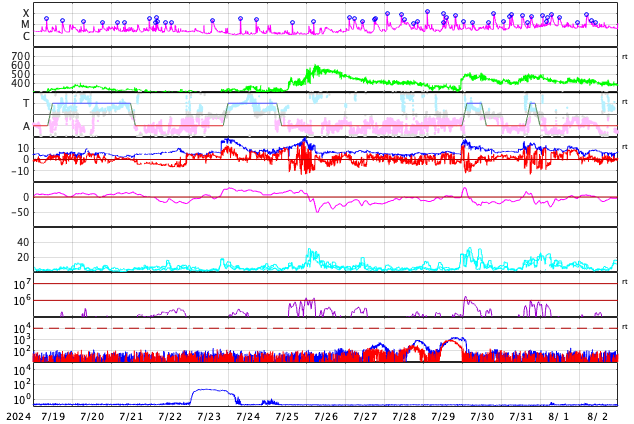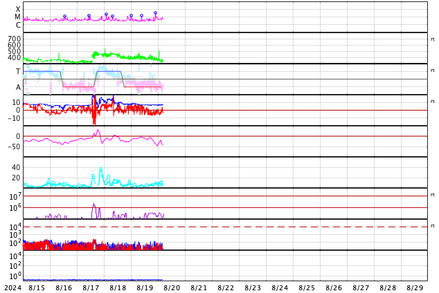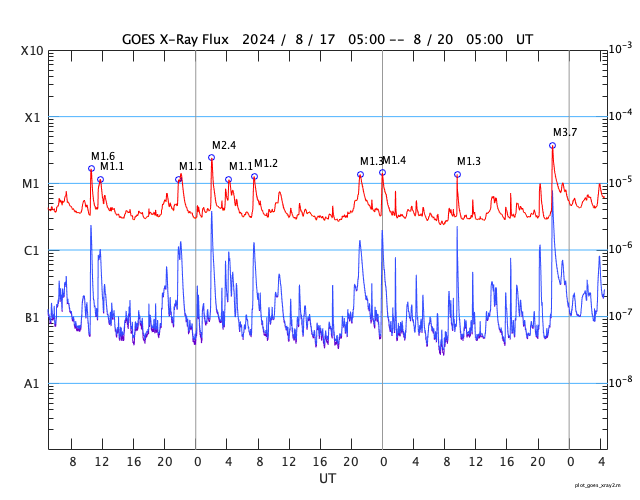 GOES衛星の太陽X線強度。赤・橙 = 0.1〜0.8 nm、青・紫 = 0.05〜0.4 nm (c) データ:NOAA/SWPC、作図:宇宙天気ニュース ![]() | ||||||||||||||||||||||||||||||||||||||||||||||||||||||||||||||||||||||||||||||||||||||||||||||||||||||||||||||||||||||||||||||||||||||||||||||||||||||||||||||||||||||||||||||||||||||||||||||||||||||||||||||||||||||||||||||||||||||||||||||||||||||||||||||||||||||||||||||||||||||||||||||||||||||||||||||||||||||||||||||||||||||