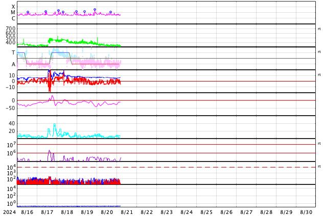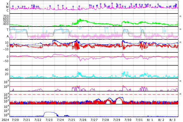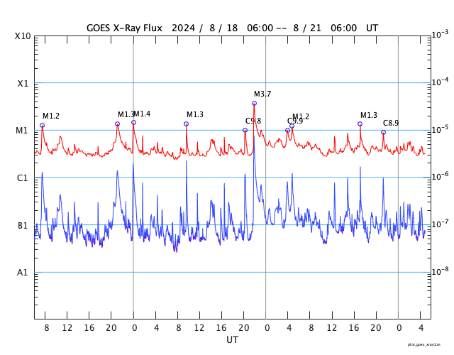 GOES衛星の太陽X線強度。赤・橙 = 0.1〜0.8 nm、青・紫 = 0.05〜0.4 nm (c) データ:NOAA/SWPC、作図:宇宙天気ニュース ![]() | |||||||||||||||||||||||||||||||||||||||||||||||||||||||||||||||||||||||||||||||||||||||||||||||||||||||||||||||||||||||||||||||||||||||||||||||||||||||||||||||||||||||||||||||||||||||||||||||||||||||||||||||||||||||||||||||||||||||||||||||||||||||||||||||||||||||||||||||||||||||||||||||||||||||||||||||||||||