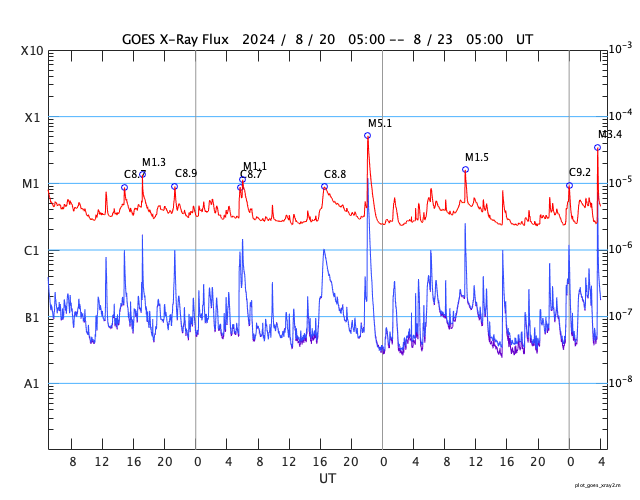 GOES衛星の太陽X線強度。赤・橙 = 0.1〜0.8 nm、青・紫 = 0.05〜0.4 nm (c) データ:NOAA/SWPC、作図:宇宙天気ニュース ![]() | |||||||||||||||||||||||||||||||||||||||||||||||||||||||||||||||||||||||||||||||||||||||||||||||||||||||||||||||||||||||||||||||||||||||||||||||||||||||||||||||||||||||||||||||||||||||||||||||||||||||||||||||||||||||||||||||||||||||||||||||||||||||||||||||||||||||||||||||||||||||||||||||||||||||||||||||||||||||||