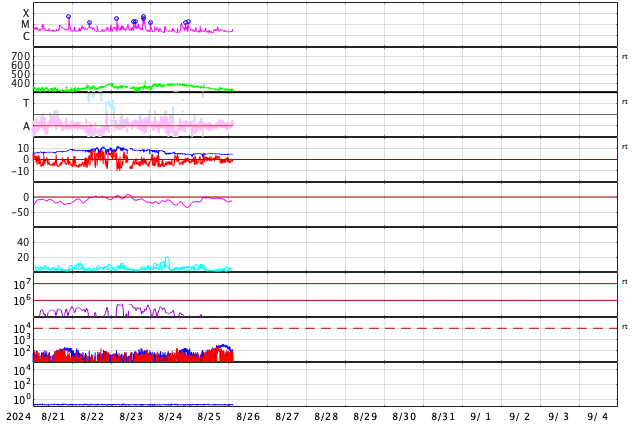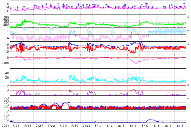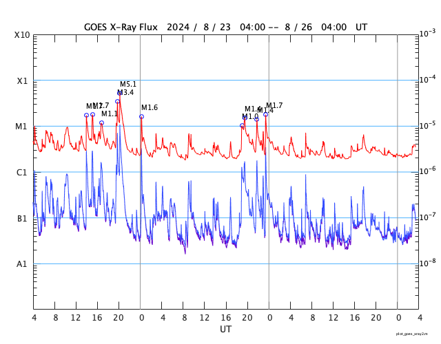 GOES衛星の太陽X線強度。赤・橙 = 0.1〜0.8 nm、青・紫 = 0.05〜0.4 nm (c) データ:NOAA/SWPC、作図:宇宙天気ニュース ![]() | |||||||||||||||||||||||||||||||||||||||||||||||||||||||||||||||||||||||||||||||||||||||||||||||||||||||||||||||||||||||||||||||||||||||||||||||||||||||||||||||||||||||||||||||||||||||||||||||||||||||||||||||||||||||||||||||||||||||||||||||||||||||||||||||||||||||||||||||||||||||||||||||||||||||||||||||||||||||||||||||||||||||||