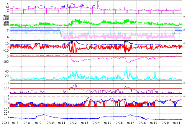 GOES衛星の太陽X線強度。赤・橙 = 0.1〜0.8 nm、青・紫 = 0.05〜0.4 nm (c) データ:NOAA/SWPC、作図:宇宙天気ニュース ![]() | |||||||||||||||||||||||||||||||||||||||||||||||||||||||||||||||||||||||||||||||||||||||||||||||||||||||||||||||||||||||||||||||||||||||||||||||||||||||||||||||||||||||||||||||||||||||||||||||||||||||||||||||||||||||||||||||||||||||||||||||||||||||||||||||||||||||||||||||||||||||||||||||||||||||||