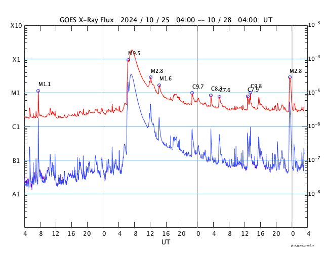 GOES衛星の太陽X線強度。赤・橙 = 0.1〜0.8 nm、青・紫 = 0.05〜0.4 nm (c) データ:NOAA/SWPC、作図:宇宙天気ニュース ![]() | ||||||||||||||||||||||||||||||||||||||||||||||||||||||||||||||||||||||||||||||||||||||||||||||||||||||||||||||||||||||||||||||||||||||||||||||||||||||||||||||||||||||||||||||||||||||||||||||||||||||||||||||||||||||||||||||||||||||||||||||||||||||||||||||||||||||||||||||||||||||||||||||||||||||||||||
