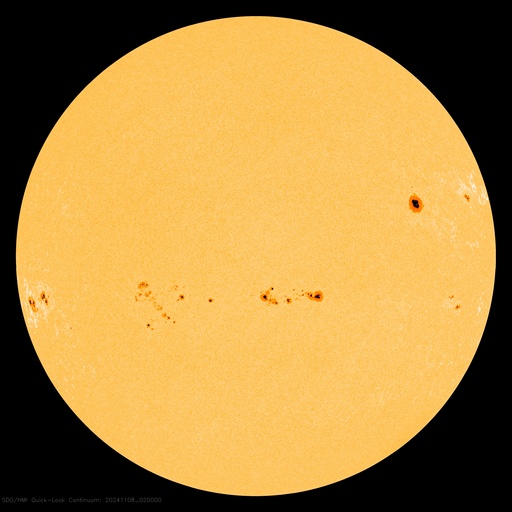 (c) SDO (NASA) ![]() SDO衛星による太陽の可視光写真。マウスの矢印を写真に重ねると、黒点番号付きの写真に切り替わります。 (c) SDO (NASA) ![]() ACEが観測した太陽風の磁場(黒線は全体の強度、赤線は南北成分) 磁場の向き、プラズマの密度、速度、温度 (c) データ:NOAA/SWPC、作図:宇宙天気ニュース ![]() AE指数(速報値) 下段のAEグラフの値が高くなると、オーロラ活動が活発化しています。 (c) 京都大学WDC ![]() ![]() 27日の太陽周期に合わせた図 太陽が同じ面を地球に向けていた27日前の変化から、今後を予想することができます。 (c) 作図:宇宙天気ニュース