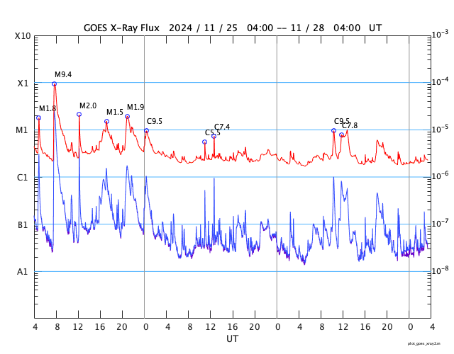GOES衛星の太陽X線強度。赤・橙 = 0.1〜0.8 nm、青・紫 = 0.05〜0.4 nm (c) データ:NOAA/SWPC、作図:宇宙天気ニュース ![]() | |||||||||||||||||||||||||||||||||||||||||||||||||||||||||||||||||||||||||||||||||||||||||||||||||||||||||||||||||||||||||||||||||||||||||||||||||||||||||||||||||||||||||||||||||||||||||||||||||||||||||||||||||||||||||||||||||||||||||||||||||||||||||||||||||||||||||||||||||||||||||||||||