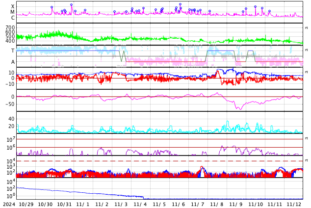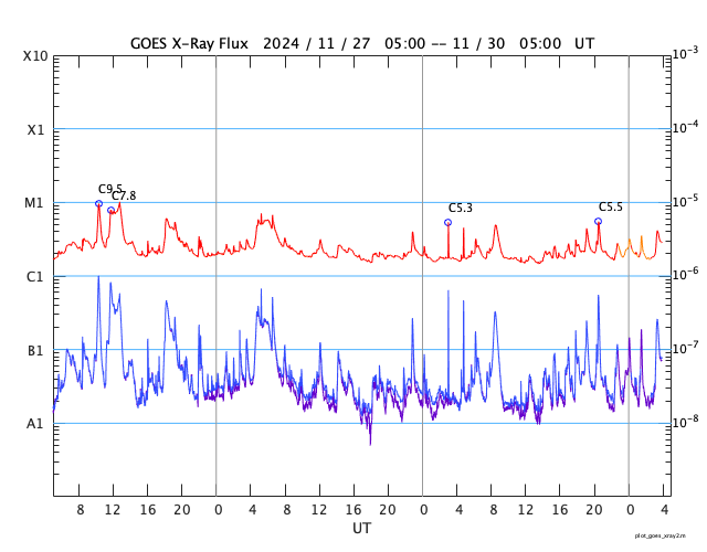 GOES衛星の太陽X線強度。赤・橙 = 0.1〜0.8 nm、青・紫 = 0.05〜0.4 nm (c) データ:NOAA/SWPC、作図:宇宙天気ニュース ![]() | ||||||||||||||||||||||||||||||||||||||||||||||||||||||||||||||||||||||||||||||||||||||||||||||||||||||||||||||||||||||||||||||||||||||||||||||||||||||||||||||||||||||||||||||||||||||||||||||||||||||||||||||||||||||||||||||||||||||||||||||||||||||||||||||||||||||||||||||||||||||||